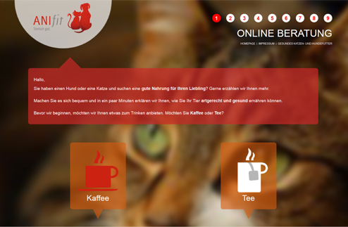 Sie möchten mehr über die Ernährung ihres vierbeinigen Begleiters erfahren? Bei der Online Ernährungsberatung von Anifit sind Sie richtig! In einem netten Gespräch informiert Sie unser elektronischer Berater über Besonderheiten bei der Ernährung von Hunden und Katzen.